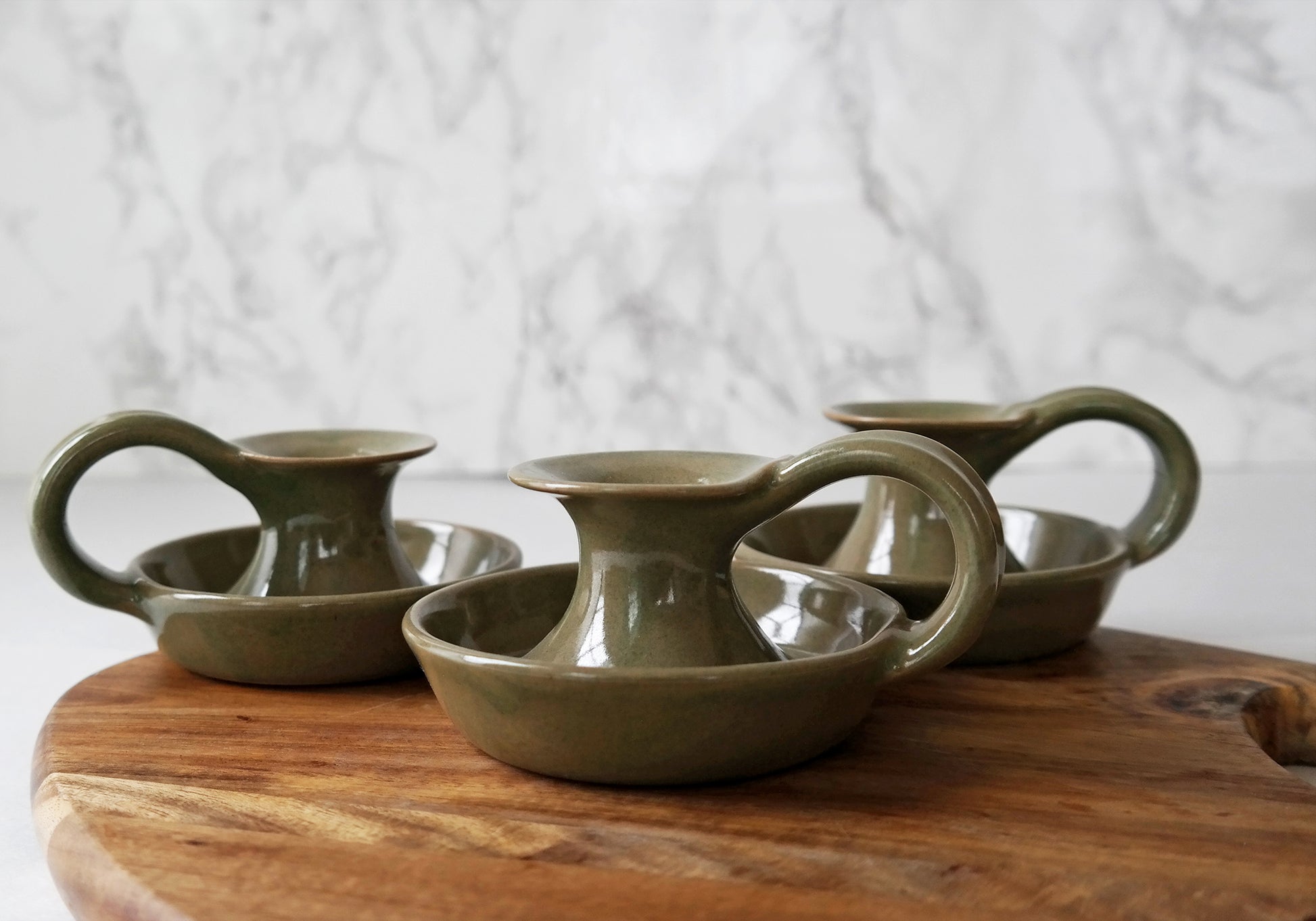 Each holder is created one at a time on a potter's wheel, finished with hand-mixed glazes and fired in small batches over 2300°F.